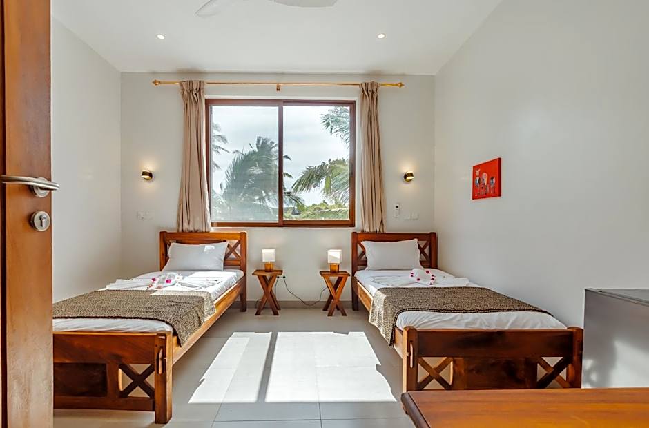 The spacious double room features a private bathroom, air conditioning, soundproof walls, as well as a seating area with a flat-screen TV. The double room provides a wardrobe, tumble dryer and garden views. The unit offers 2 beds.
